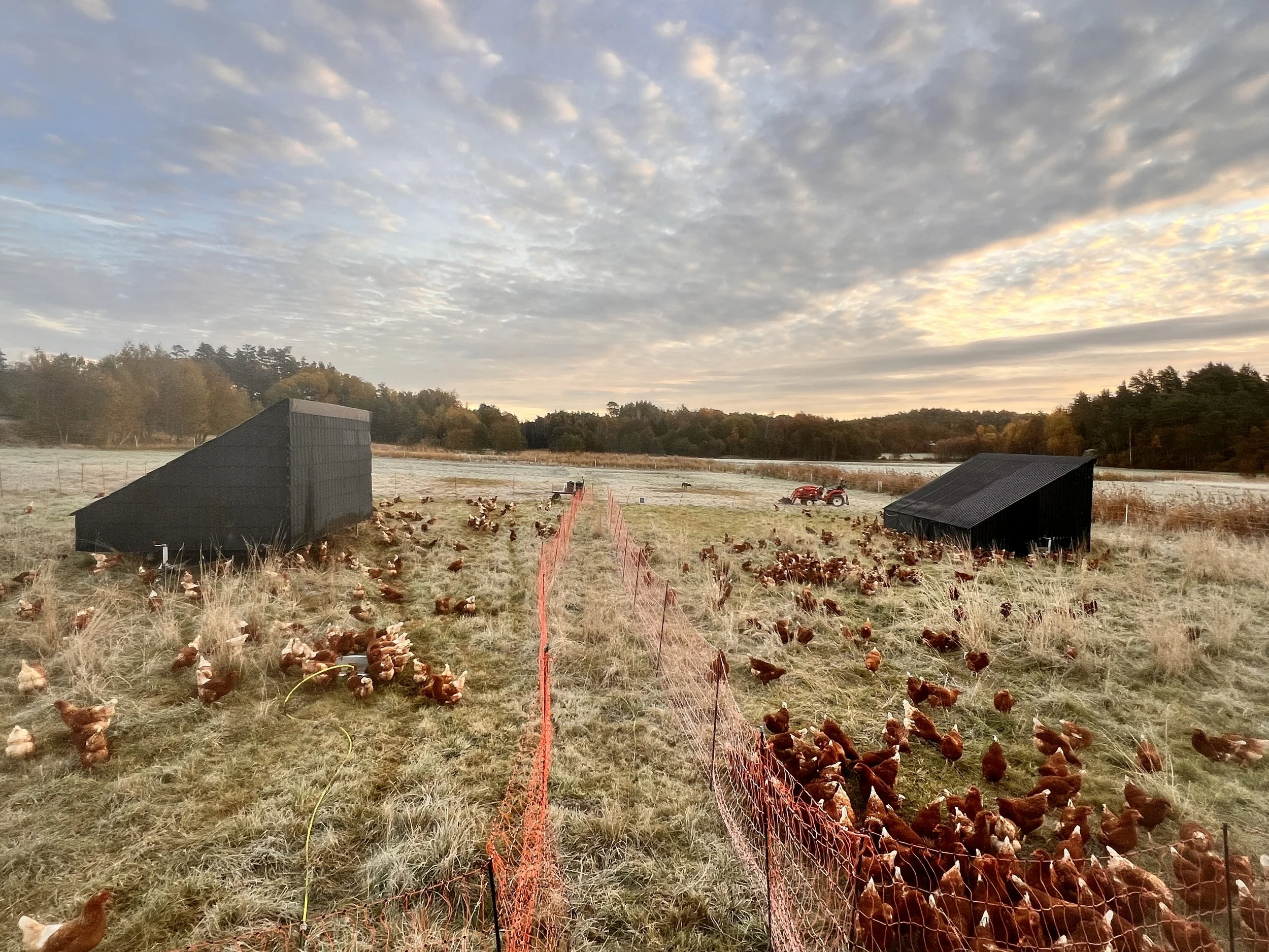 I Sverige kom Stora Svälte Gård i vår väg. Här startade vi vår småskaliga regenerativa gård och lanserade ägg från gröna betesmarker 2024. Idag njuter över 60 familjer av våra ägg varje vecka, och – tack vare Livsmedelverkets certifiering – levererar vi till restauranger, bagerier, förskolor och återförsäljare.